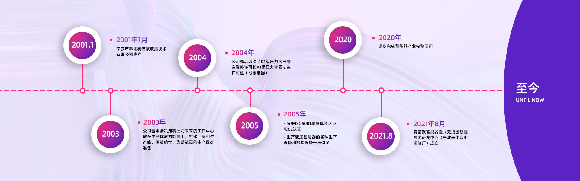 寧波市奉化賽諾歐液壓技術有限公司始建于2001年,是國家定點專業(yè)生產蓄能器、無縫高壓氣瓶的制造企業(yè),已有15年以上的生產歷史。公司具有A1級壓力容器制造許可證、iso9001國際質量體系認證及歐盟CE認證證書。